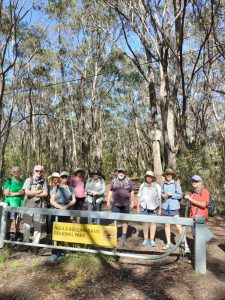 The medium walkers set out in two groups under bright sunshine for Ngula Bulgarabang Regional Park (formerly Radiata Plateau). The first half of the walk followed the medium route for Day 5 of the 5-Day Walk through the Gully and along the bush track from Farnells Road to Norths Lookout and the Six Foot Track. The increasing heat and the promise of an early arrival at the pub saw several walkers leave at the top of the Six Foot Track and return to Katoomba along the shared walking-cycle path next to the highway. The rest of the walkers continued on to Ngula Bulgarabang with 11 walkers doing the extension to Megalong Trig before returning to Katoomba.