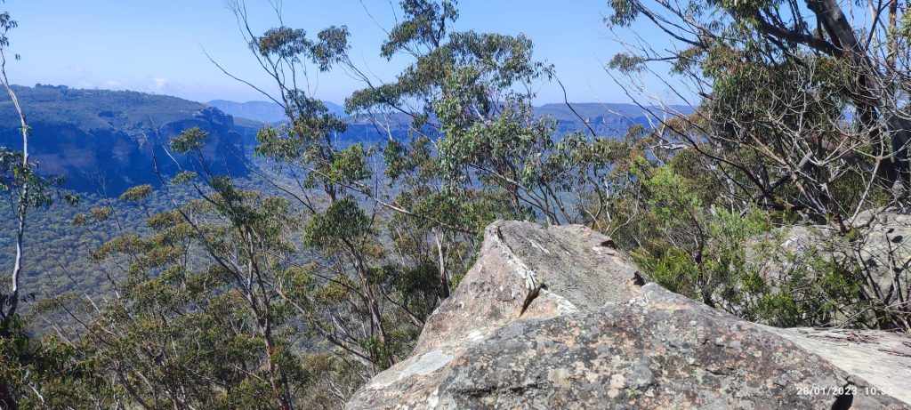 We all left from Katoomba Station and went down past Catalina Lake and the through the Gully. At the Gully, we stopped for about 5 minutes to hear from Tony about the significance of the Gully to local Aboriginal people. We also heard about Catalina Park’s more recent history as a motor racing venue. We walked along beautiful bush trails to Norths Lookout, one of my favourite lookouts in the Blue Mountains. From there we walked through Ngula Bulgarabang Regional Park (Radiata Plateau) and on to two lookouts. The second had stunning 360 views of the Megalong Valley. We then returned to Katoomba to the Katoomba Family Hotel for lunch and our meeting. Anne