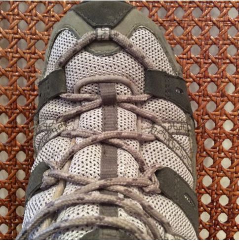 - Complete lacing of the boot/shoe as is normally done (see photo below).
