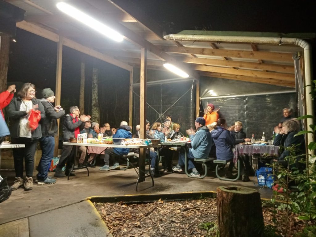 Later at 6pm, 30 people gathered at the camping grounds for a BYO BBQ, nibbles, salads and desserts. There was much chatter and laughter which the heavy rains didn’t dampen!