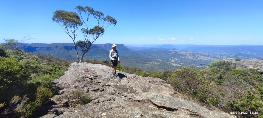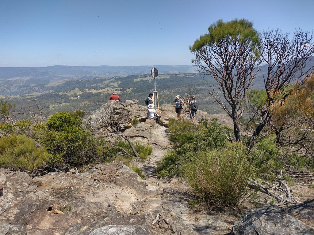 The medium walkers set out in two groups under bright sunshine for Ngula Bulgarabang Regional Park (formerly Radiata Plateau). The first half of the walk followed the medium route for Day 5 of the 5-Day Walk through the Gully and along the bush track from Farnells Road to Norths Lookout and the Six Foot Track. The increasing heat and the promise of an early arrival at the pub saw several walkers leave at the top of the Six Foot Track and return to Katoomba along the shared walking-cycle path next to the highway. The rest of the walkers continued on to Ngula Bulgarabang with 11 walkers doing the extension to Megalong Trig before returning to Katoomba.