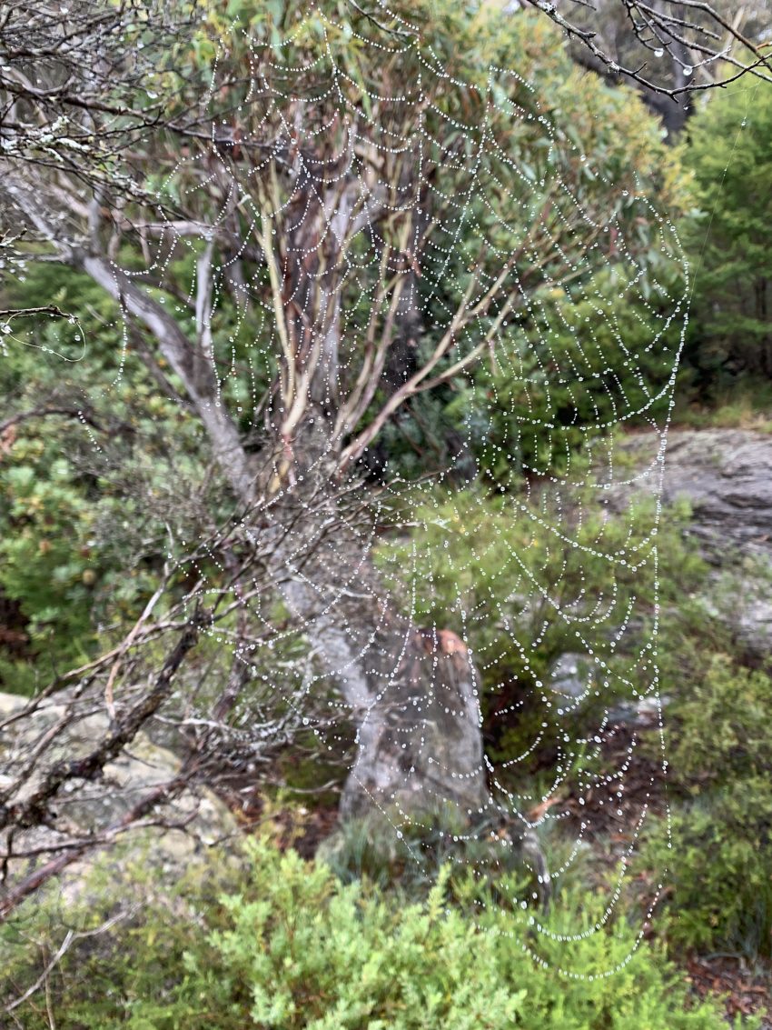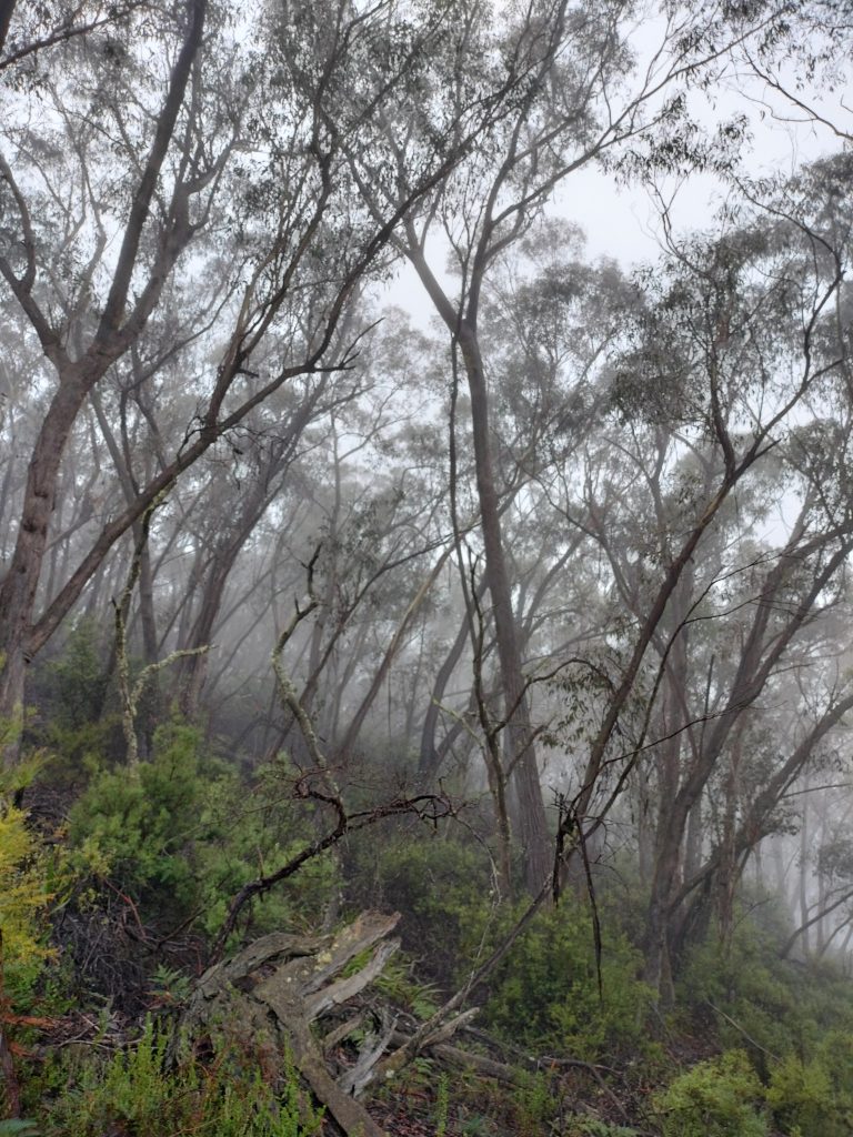 The pretty views over Kanimbla Valley were hidden behind banks of low cloud but it was still atmospheric. The next viewpoint was Pulpit Rock where misty conditions and drizzle obscured any views. Due to the wet conditions and slippery rocks we decided to skip visiting the Bushrangers cave which would have taken us down a rocky zig zag track.