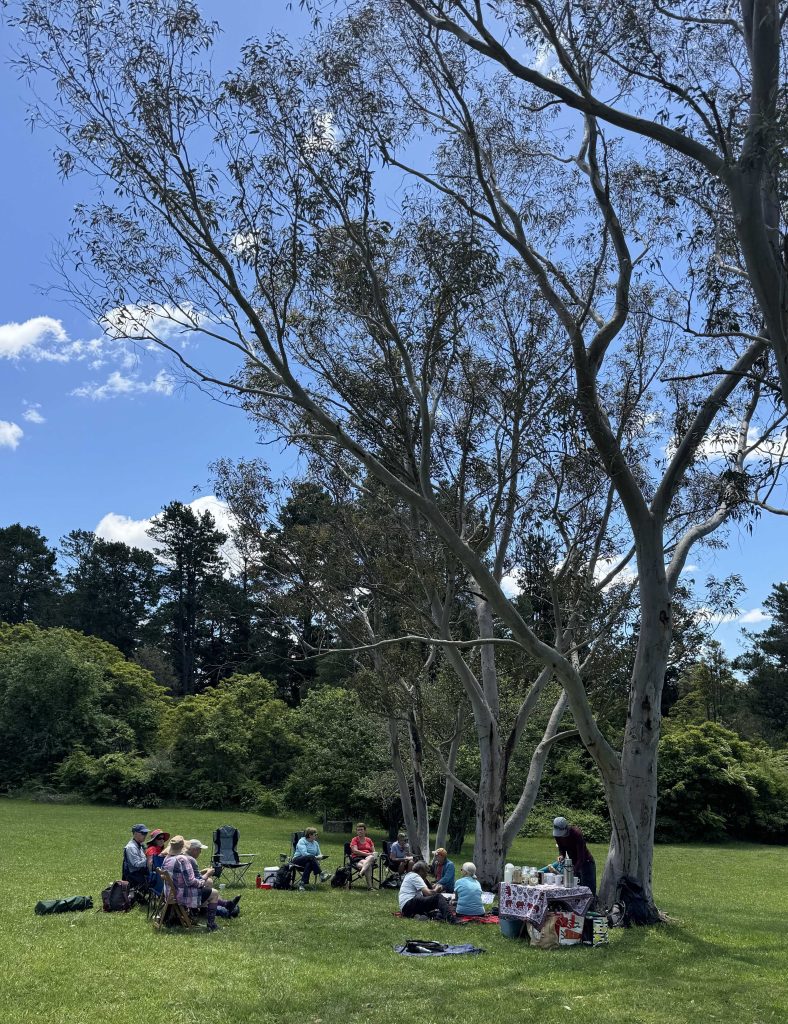 A large group of almost 50 walkers joined BMCS for a delightful Spring day walk starting from Woodford Reserve, Woodford. Wow, 50 people is probably our largest gathering for a last Saturday of the month Camino walk! Walkers were separated into Easy and Medium groups and then split into two groups again to make it manageable for the walk leaders and sweepers before heading off.
